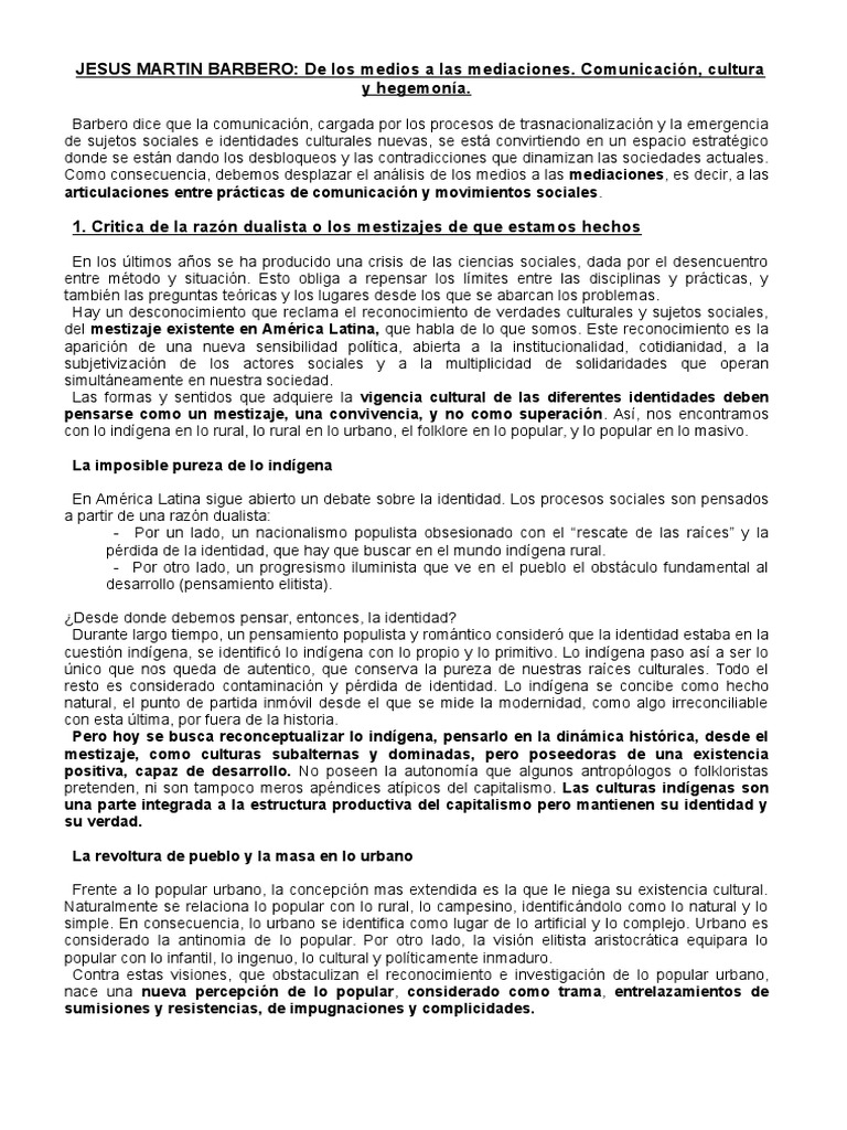 Mediaciones Jesus Martin Barbero - Pdf De Los Medios A Las Mediaciones Comunicacion Cultura Y Hegemonia Jesus Martin Barbero 1987 / Título original de los medios a ias mediaciones.